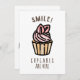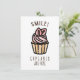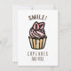 Smile! written in large modern font above a pink cupcake in a cream and peach cupcake liner. "Cupcakes are Here" is written underneath in an elegant pale grey font.