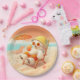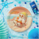 Smile Dog is in full vacation mode—relaxing in orange shorts, sipping a beach drink, and soaking up the sun. Perfect for summer vibes and chill spaces.