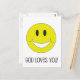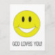 This inspirational, happy and Christian post card features a smile face with "God Loves You!" text.