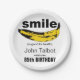 Customisable humourous 85th Birthday Paper plate with banana and quote. Matching birthday paper napkin and paper cup, birthday save the date, invitation, guest book and other birthday gifts.
