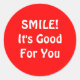 SMILE! It's Good For You. Red. Classic Round Sticker