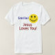 Share your Christian faith and let people know that Jesus loves them with this Smile! Jesus Loves You Christian T-shirt(Version 2) by Faith Branded.