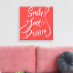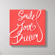 Card with hand drawn typography design element for greeting cards posters and print. Smile love dream with little hearts clouds and smile on red background eps 10 | Bigstock® - All Rights Reserved.
