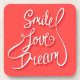 Card with hand drawn typography design element for greeting cards posters and print. Smile love dream with little hearts clouds and smile on red background eps 10 | Bigstock® - All Rights Reserved.