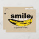 Graphic art: Banana orientated to form a smile + small text between brackets: (is good for health). Perfect for anyone who keeps smiling year after year. Design on invitation postcard with texts for 70th Birthday Save the Date to customise. You can easily change text (font, colour, size and position) by clicking the customise button. Matching birthday invitation, birthday guest books (hard cover and spiral notebook), birthday paper napkin, paper plate and more...