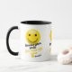 Bring positivity to your day with this cheerful smiley mug featuring an uplifting quote: “Because your smile, you make life more beautiful.”