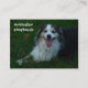 Business Card template suitable for breeders of the Australian Shepherd Breed of sporting herd dog. Aussies! Customisable with business name and contact information on the front and rear, this card grabs your attention with a beautiful Black Tri coloured Australian Shepherd. These are playful working and companion dogs. and "Blue" has lovely facial markings with pretty even eye patches, a wide blaze, and a flowing white vest.