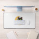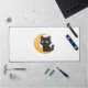Smiling Black Cat with Glowing Green Eyes Sitting Desk Mat