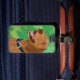 Smiling Brown Vizsla on Green Background Luggage Tag