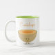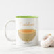 A melon with a mug, and a mug with a melon. This cup shows a smiling cantaloupe character on two sides with customisable text.