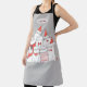 Whimsical Holiday themed apron features hand drawn smiling cats decked out for the Christmas season in Santa caps, bow ties and scarves on grey background. Centre text oval can be used to personalise this accessory