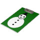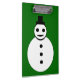 This awesome clipboard features a smiling white Christmas snowman with black buttons and a top hat. He looks like one cool gent and would love to help you spread the joy of Christmas this year. The background is a festive shade of green.