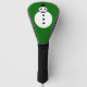 This awesome golf driver cover features a smiling white Christmas snowman with black buttons and a top hat. He looks like one cool gent and would love to help you spread the joy of Christmas this year. The background is a festive shade of green.
