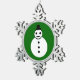 This awesome ornament features a smiling white Christmas snowman with black buttons and a top hat. He looks like one cool gent and would love to help you spread the joy of Christmas this year. The background is a festive shade of green.