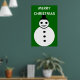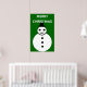 This fun festive poster features a smiling white Christmas snowman with black buttons and a top hat. He looks like one cool gent and would love to help you spread the joy of Christmas this year. The background is a festive shade of green and there is a white border and white snowy text that reads "Merry Christmas". The poster is available in several sizes, making it an ideal decoration for a family living room or a large hall.