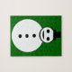 This awesome puzzle features a smiling white Christmas snowman with black buttons and a top hat. He looks like one cool gent and would love to help you spread the joy of Christmas this year. The background is a festive shade of green.