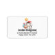 Address labels with an adorable image featuring a smiling cow, with a gold star balloon and some cake and a present.