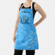 This kitchen apron has a smiling cute blue snail with a tie dye patterned shell on a background done in shades of aqua blue. Customise your text with the template.