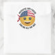 Show off your patriotic spirit with this fun and vibrant sticker set of 6 or 20. Featuring a cheerful smiling emoji wearing a bold American flag bandanna, these stickers are perfect for celebrating your love for the USA. With the phrase "Patriotic and Proud, Smiling all the Way", these stickers are ideal for decorating laptops, water bottles, notebooks, and more. Whether it's for 4th of July, Memorial Day, or just because you're feeling proud, these stickers are a playful way to express your patriotism with a smile.