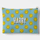 Bring back the good vibes with this retro-style custom name pouch! Featuring a cheerful yellow smiley face pattern on a bold blue background, this fun and playful design is perfect for fans of 90s rave aesthetics and nostalgic style. Add your name or a friend's for a personalised touch—ideal as a makeup bag, pencil case, or travel pouch that spreads smiles wherever it goes.