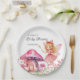 Smiling Fairy and Pink Mushrooms Baby Shower Paper Plate