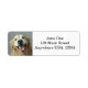 These return address labels feature a closeup photograph of a happy golden retriever dog, on a grey background.