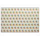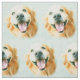 This fabric features a tiled watercolor portrait of a smiling golden retriever dog, on a blue background.