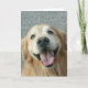 Show your appreciation with this smiling golden retriever thank you card! Design features a closeup photograph of a happy dog, on a grey background.