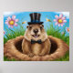 Smiling Groundhog Emerging from Burrow Amongst Spring Blooms and Green Grass. An adorable, smiling groundhog emerges cutely from its burrow, surrounded by vibrant spring flowers and lush green grass.