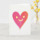 This cute Valentine's greeting card features a hand-drawn heart character centered on a white background. The heart fades from bright pink on the left to warm red on the right, with a simple, slightly uneven marker look. It has two round yellow eyes and a thick yellow smile that makes it look happy and friendly. Near the top of the heart, a few small reddish-orange lines stick out like tiny legs or little roots, adding a fun touch of movement. There isn’t any text on the card, so the heart’s face and colors do all the talking. The plain background keeps the focus on this sweet character and the warm, caring feeling it gives off ❤️