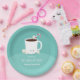 Smiling Hot Chocolate Teal Christmas Paper Plate