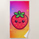 Smiling Kawaii Strawberry on Pastel Gradient Backg Beach Towel