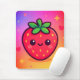 Smiling Kawaii Strawberry on Pastel Gradient Backg Mouse Pad