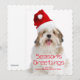 Smiling Lhasa Apso Dog Wearing Santa Hat Holiday Card
