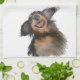 Smiling Long Haired Dachshund Original Art Tea Towel