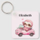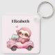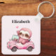Smiling Pink Sloth Driving a Convertible Key Ring