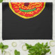 Smiling Pizza Face Illustration Design Tea Towel