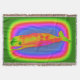 A quality printed throw has its advantages. This is a much finer weave throw than its loopier cousins, and though lighter, it is worth the investment for custom room accessorizing. The back is much prettier than the typical brown, and the fringe on the long sides very vivid, the selvage nicely done. Before photographing, I washed the throw in cold water, delicate, with a thicker woven throw the same size. On tumble dry low, this throw was dry in half the time as the other. This is a very practical quality if you use throws for furniture covers or to wrap up in frequently. The sleekness of the fabric makes it a great layer for accenting or protecting without the feeling of sitting on too much stuff. Perfect for napping or when you feel a light chill coming on. The color printing is beautiful and on this fabric, matched the design and color of my Photoshop image. This is an advantage for blending room fabrics and colors. The fringe on the short sides prints the colors from the design image and therefore varies from the side fringe. I streaked a white fractal line through the plaid pattern to give the illusion of weaving. This printed as crisp as an illusory thread, and put some white in the short side fringe, showing another advantage of print vs loomed- for artistic purposes, line lines, detail, and color integrity can be planned and preserved. My loomed throws have color limitations and more of a needlepoint texture. Print throws reproduce an exact image. The throw felt a little stiff straight out of the package, but this went away in the first delicate wash. Of course I searched the wash water for ink or bleeding and there was none.