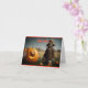Awesome picture of a smiling pumpkin and scarecrow in a pumpkin patch, with bats, is featured on this Halloween greeting card. The front of the card reads, "Hope Your", and inside of card reads, "Halloween is not to scary but rather Fun and Merry, Happy Halloween"! A great card to send family, friends and children for the Halloween Holiday!