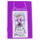Smiling Purple Angel on White Cloud with Hearts Medium Gift Bag