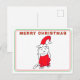 Why not wish someone a merry Christmas with this postcard featuring a smiling dog wearing a red Christmas outfit?