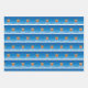 Smiling reindeer snowfall personalised blue wrapping paper sheet