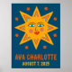 Smiling Retro Sun CUSTOM BABY NAME BIRTHDATE Art Poster