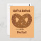 A food postcard with a smiling pretzel cartoon character and the words “Soft and Salted Pretzel”.