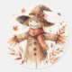 Smiling Scarecrow Autumn Watercolor Classic Round Sticker