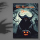 Take a walk on the dark side and really stand out with this frightening red eyed demon Halloween party invitation. The front has a horned, red eyed devilish demon clutching a black pumpkin Jack O Lantern with matching glowing red orange eyes. The back has an black shaded orange background, with vintage black text. Created by Simply Farmhouse Press.