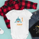 Adorable birthday bodysuit matches our Shark Bait birthday party invitations and party supplies. Design features a cute smiling blue shark with your child's age alongside and name beneath. Perfect for first birthday parties and smash cake sessions!