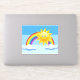 Adorable picture of a smiling sun with rainbow and clouds, is featured on this custom-cut vinyl sticker. Use to decorate many things, a child's room, classroom and more! Available in tiny to extra large, 6 styles to choose from.
