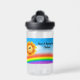 Cute picture of a smiling sun with blue sky and rainbow is featured on this 14 oz. water bottle for kids. With message, "Have A Sunny Day", you can add a name too! Leak proof, not for use with hot liquids but great for school, sports and where ever your child needs water to drink!