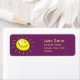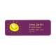 Special smiling sun personalised address labels with an art design of a very cute yellow smiling sunshine cartoon against a dark purple customisable colour background. The text is fully customisable to include your own personal details.